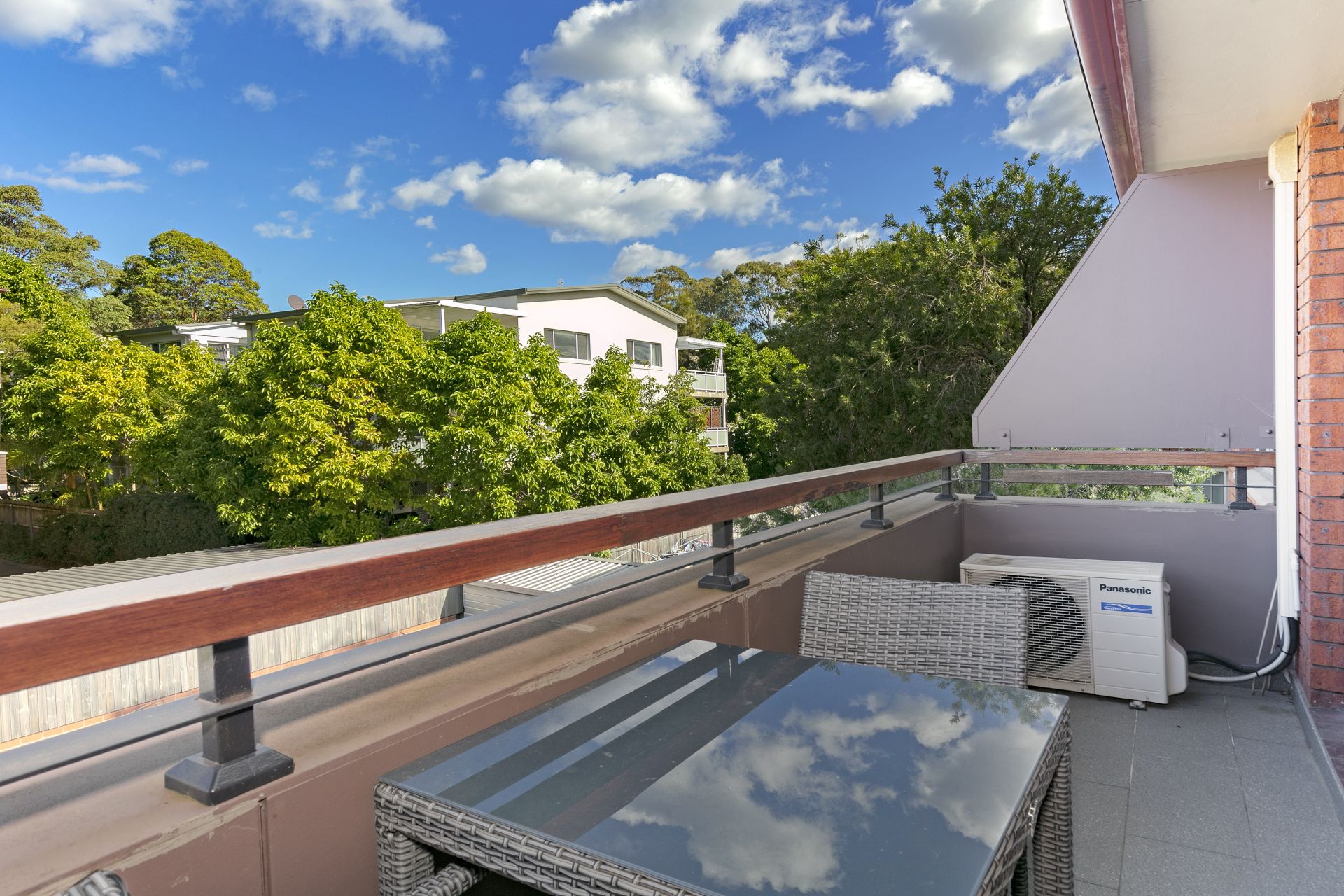 * Private balcony, wall mounted air conditioning unit